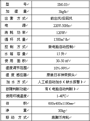 春岛公司湿膜加湿器加湿强劲、无白雾现象 采用进口植物湿膜,净化空气 采用数码电脑全自动控制 液晶背光显示,湿度10-99%任意设定 两档风速,加湿范围大、均匀 采用松下电磁阀独立控制,安全可靠 设备贮水箱采用双浮子检测,精确稳定 电子检测,漏水保护功能 与因故障告警功能,人性化设计 采用累计工作时间及手动模式自动换水功能 不锈钢水箱,防霉、防菌、耐用 具有通风模式,循环室内空气