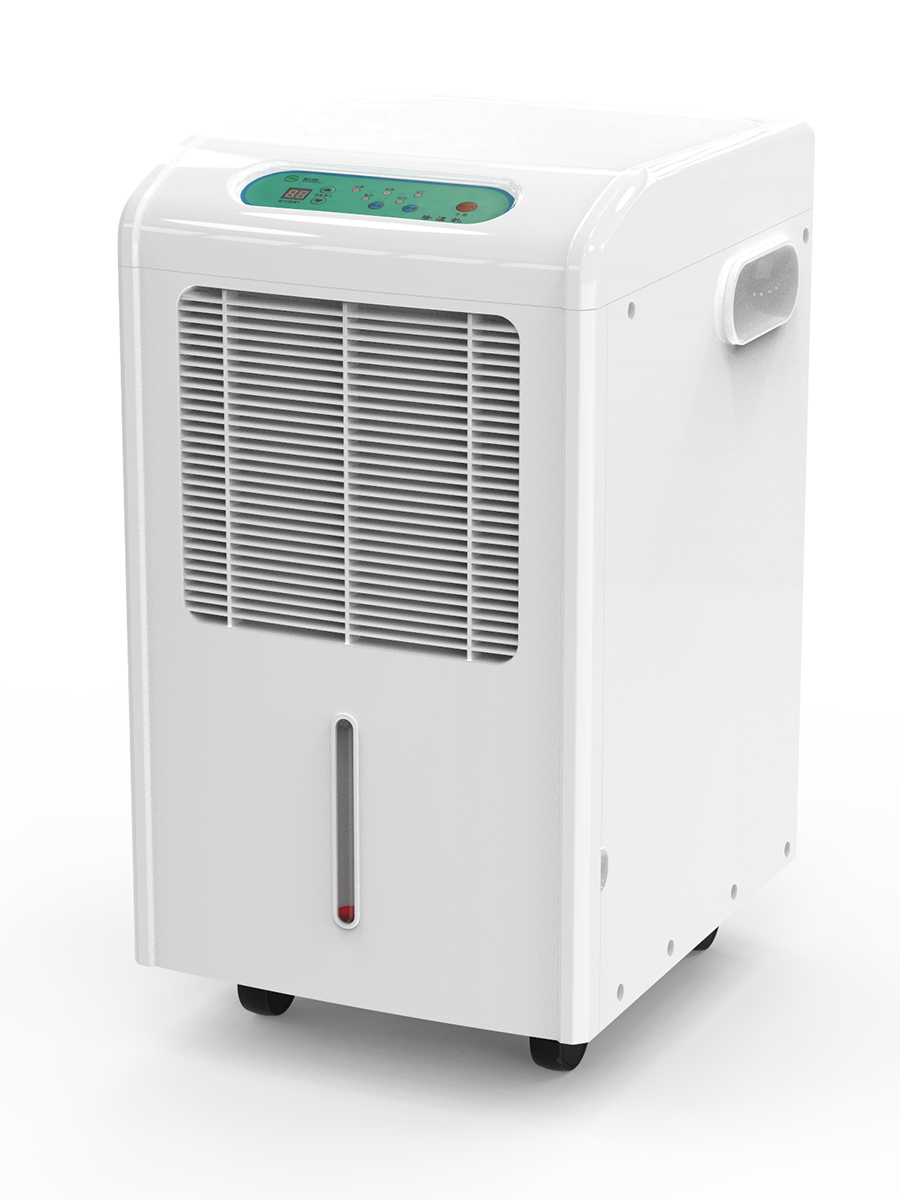 本产品属冷冻式除湿机,整机有压缩机、热交换器、风扇、机壳及控制器组成,其工作原理是:由风扇将潮湿空气抽入机内,经过制冷系统(压缩机,蒸发器,冷凝器)相互作用下凝结成霜,系统自动升温化霜成水流入盛水箱,产生出干燥空气排出,如此循环使室内湿度降低,潮湿空间逐步达到干爽的效果。
