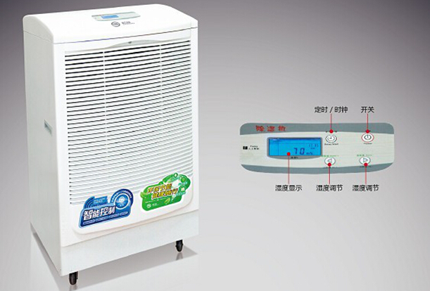 本产品属冷冻式除湿机,整机有压缩机、热交换器、风扇、机壳及控制器组成,其工作原理是:由风扇将潮湿空气抽入机内,经过制冷系统(压缩机,蒸发器,冷凝器)相互作用下凝结成霜,系统自动升温化霜成水流入盛水箱,产生出干燥空气排出,如此循环使室内湿度降低,潮湿空间逐步达到干爽的效果。